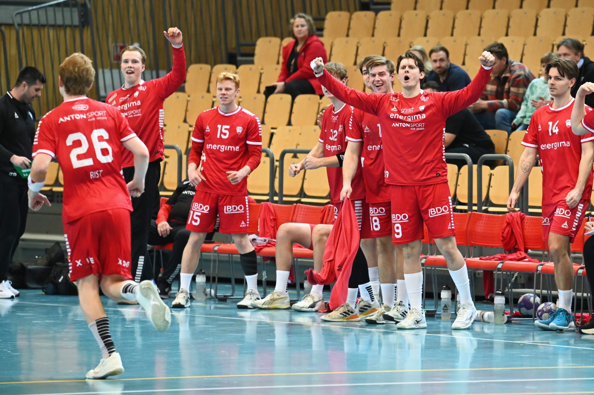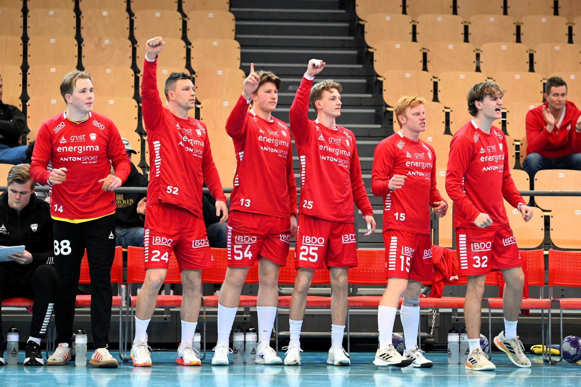 Håndballglede i pausen: Vivil IL i aksjon under Haslum–Molde